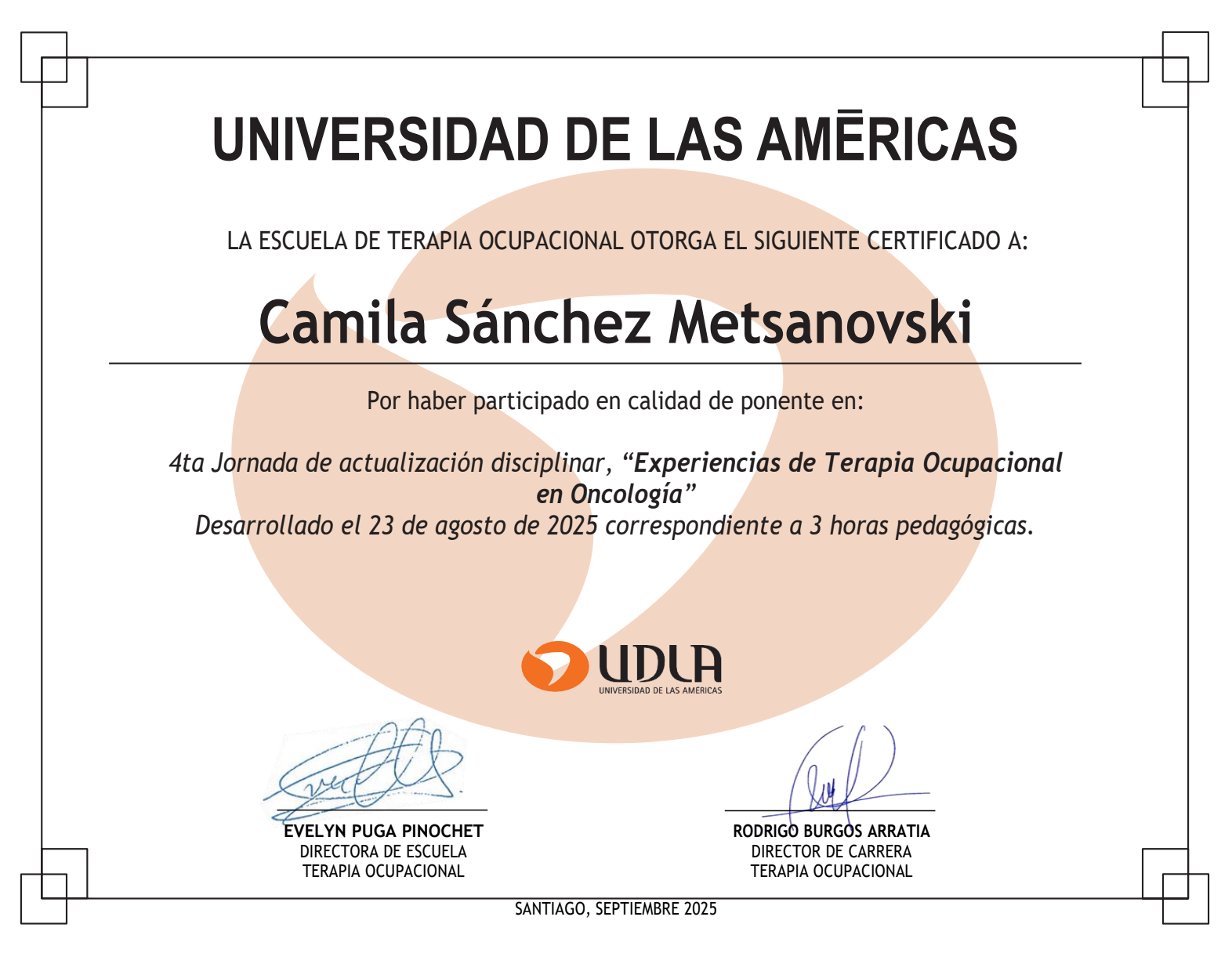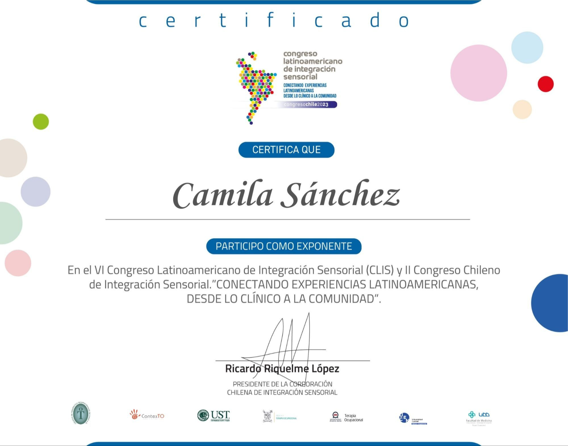 🤍 Formación Avanzada en Corporacion Chilena de Integración Sensorial - Universidad del Sur de California (EEUU). Magister en Terapia Ocupacional mención psicosocial